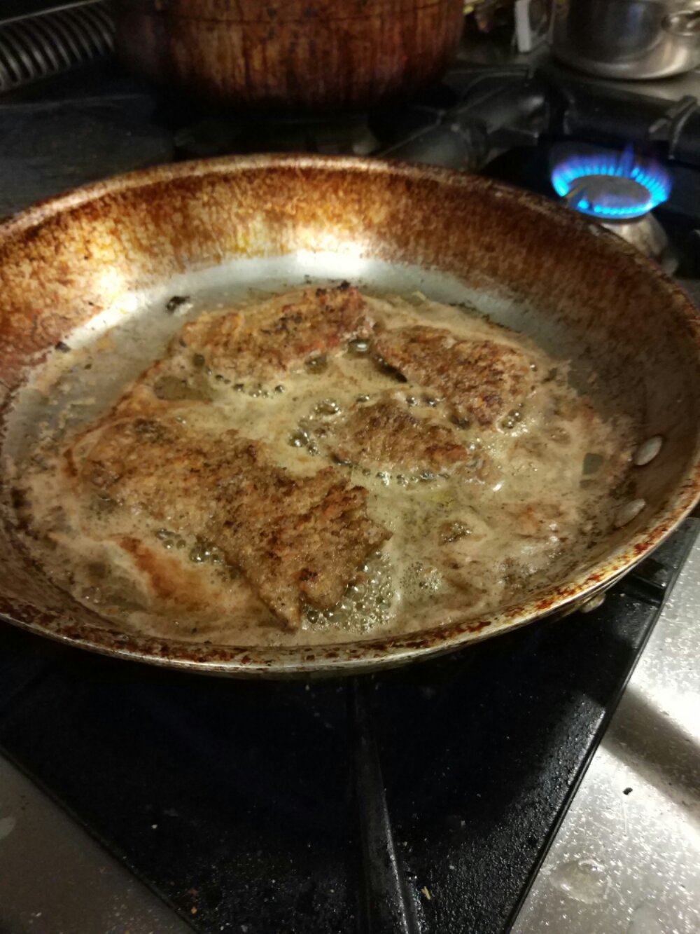 - kruid de ballen, sla ze wat platter tot een soort schnitzel