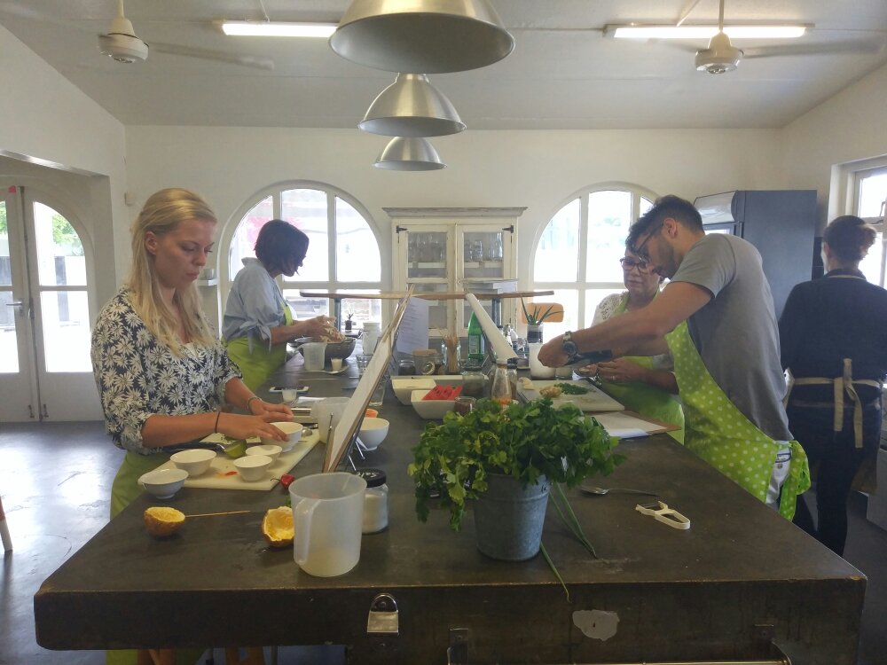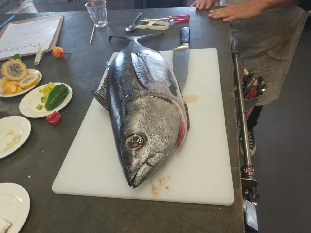 Met deze, en nog wat meer ingrediënten maakten we in groepjes tonijnceviche, Jerk Chicken met mango mayonnaise (meneer at 10 dagen lang élke dag mango mayonaise, zalig), zelfgemaakte tortilla’s met gegrilde longhaas, funchi (‘polenta’) papat met pika-mayonaise, zoete aardappelsalade en coco slaw.
